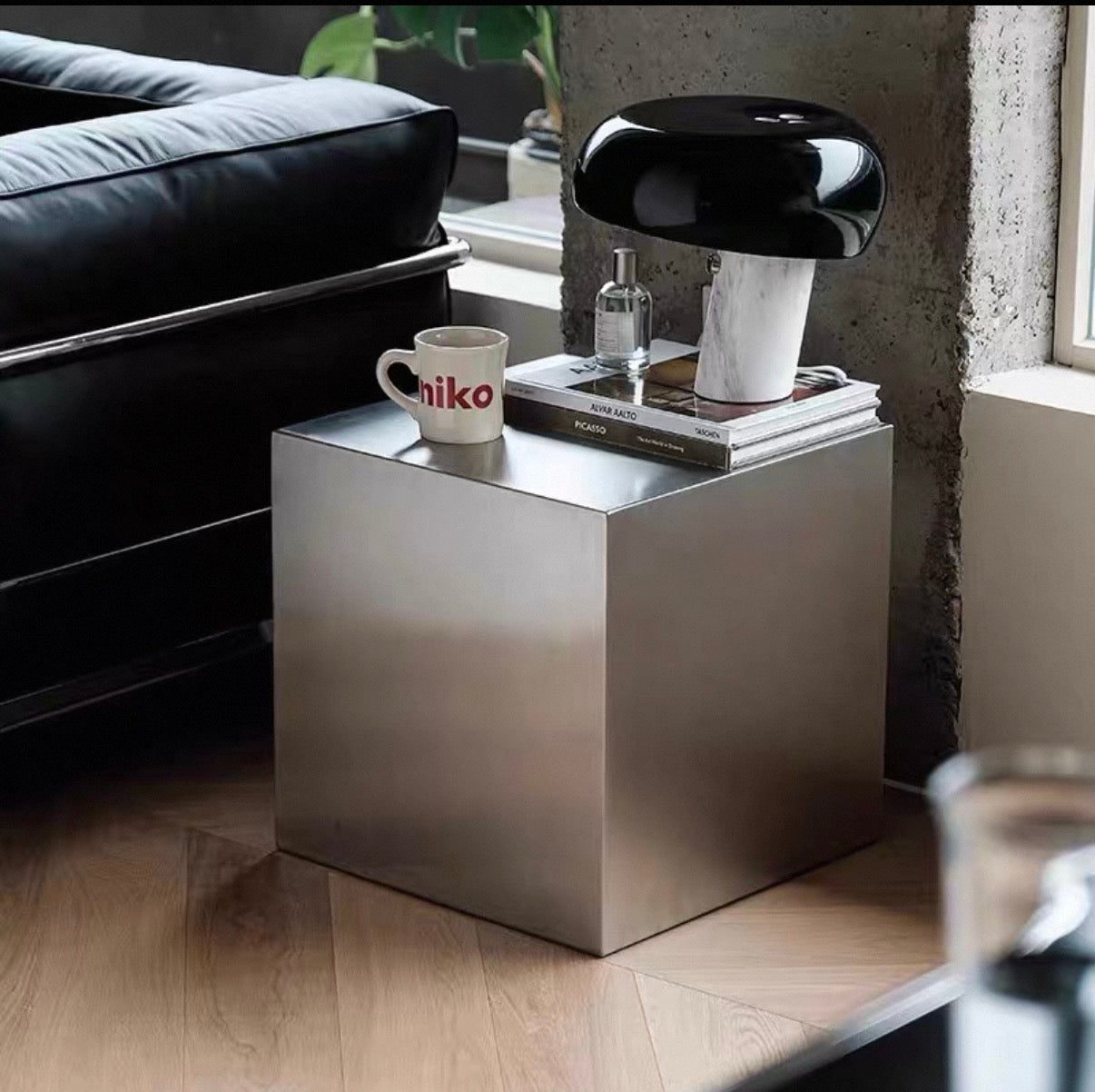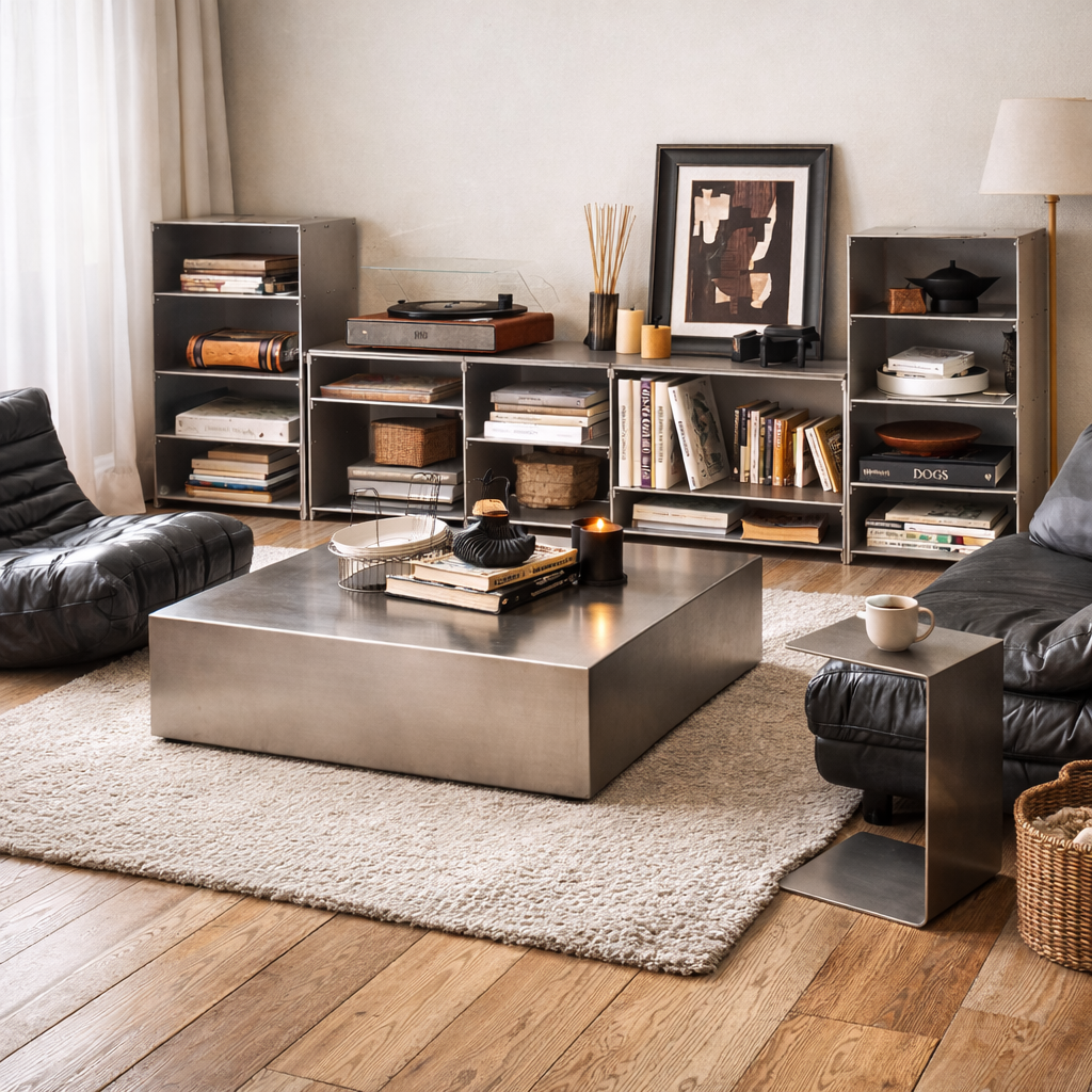 Stainless steel works best alongside wood, fabric, and warm lighting.